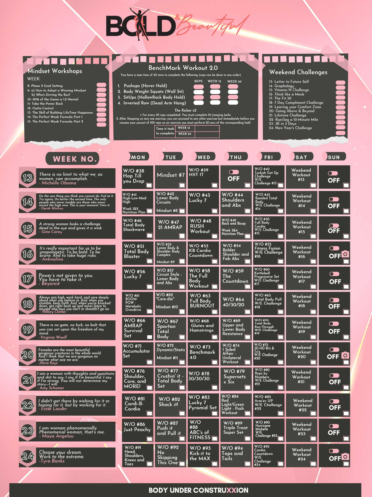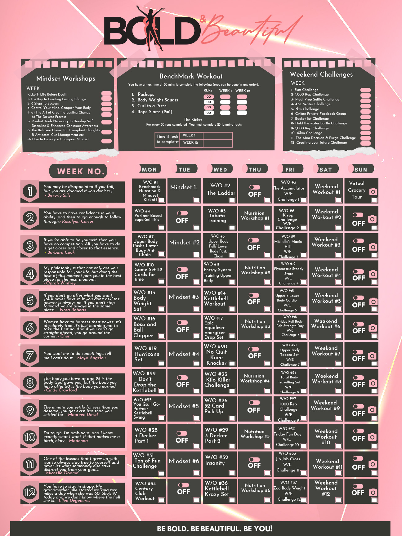 All your nutrition and Mindset workshops will eventually end up inside this portal. This is yours to keep upon completion of the program. So in case you miss a workshop you can always go back to retrieve handouts and videos. There are also BONUS recipes, recordings from coaching calls, momentum conferences, and 21x beyond beginner based workouts